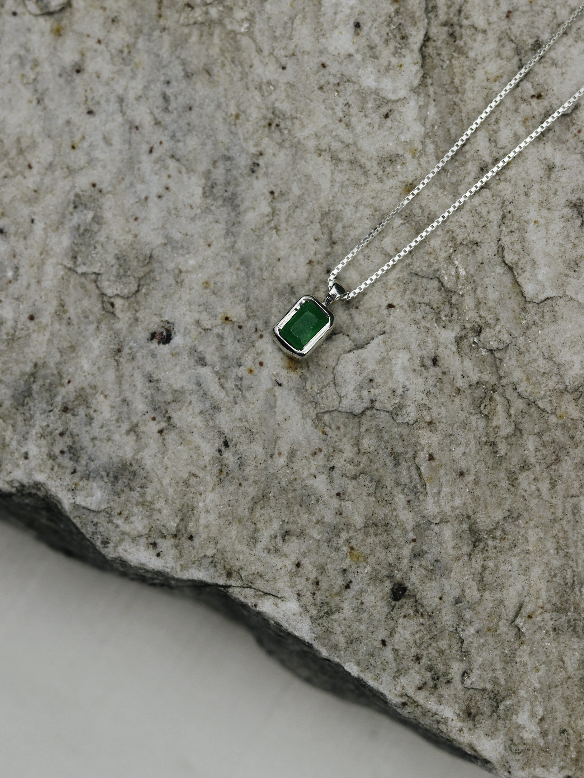 O Colar Alísio é um pingente quadrado em cravação inglesa, confeccionado em prata 925. O jade da Malásia natural traz um verde intenso que simboliza proteção, equilíbrio e harmonia. Uma joia sofisticada, imponente e cheia de significado.