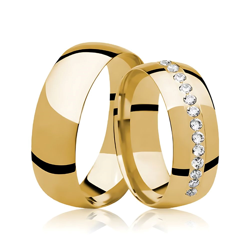 Reta: A parte interna da aliança é completamente plana, oferecendo um ajuste tradicional.