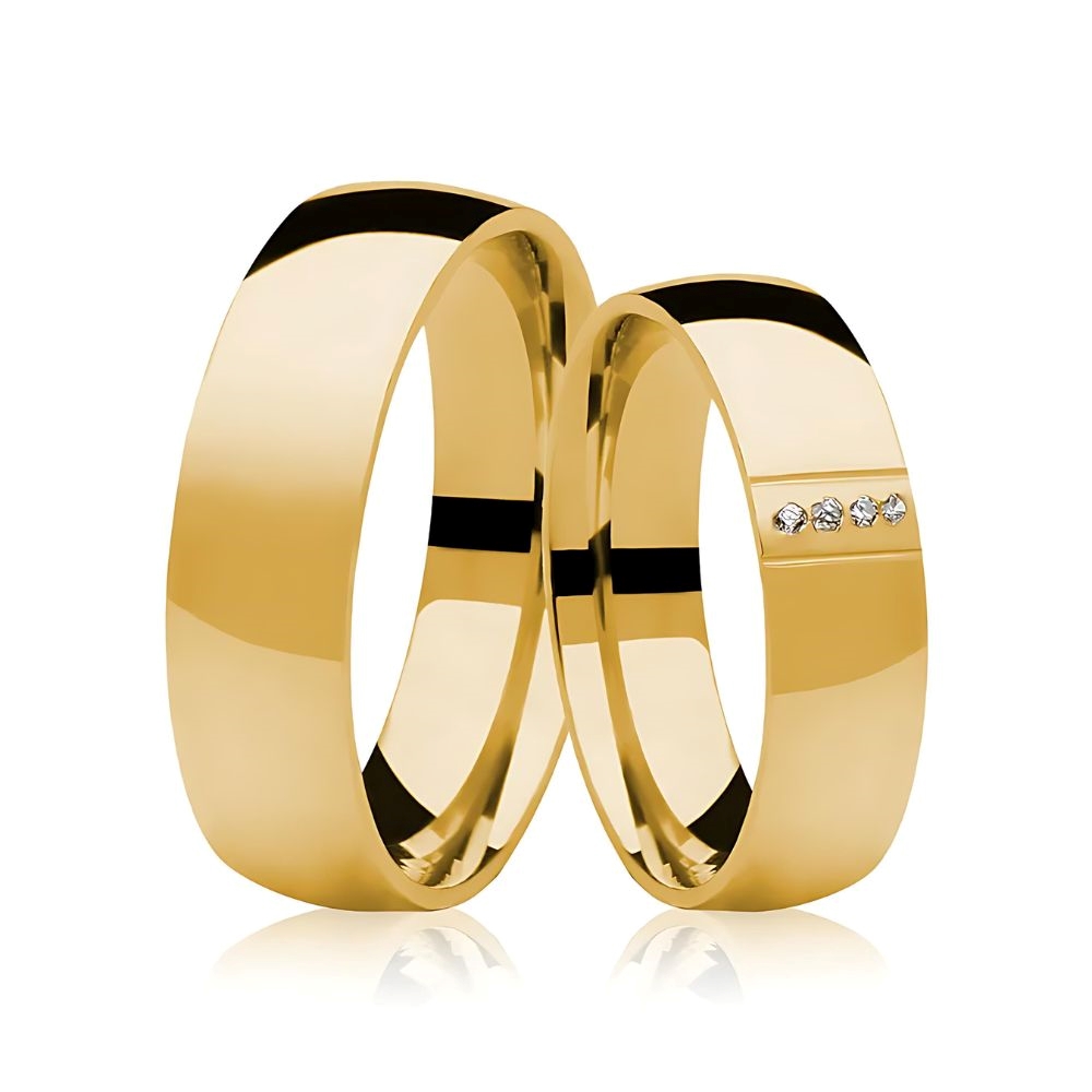 Reta: A parte interna da aliança é completamente plana, oferecendo um ajuste tradicional.