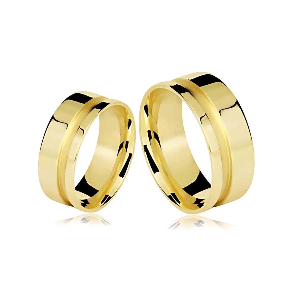 Reta: A parte interna da aliança é completamente plana, oferecendo um ajuste tradicional.