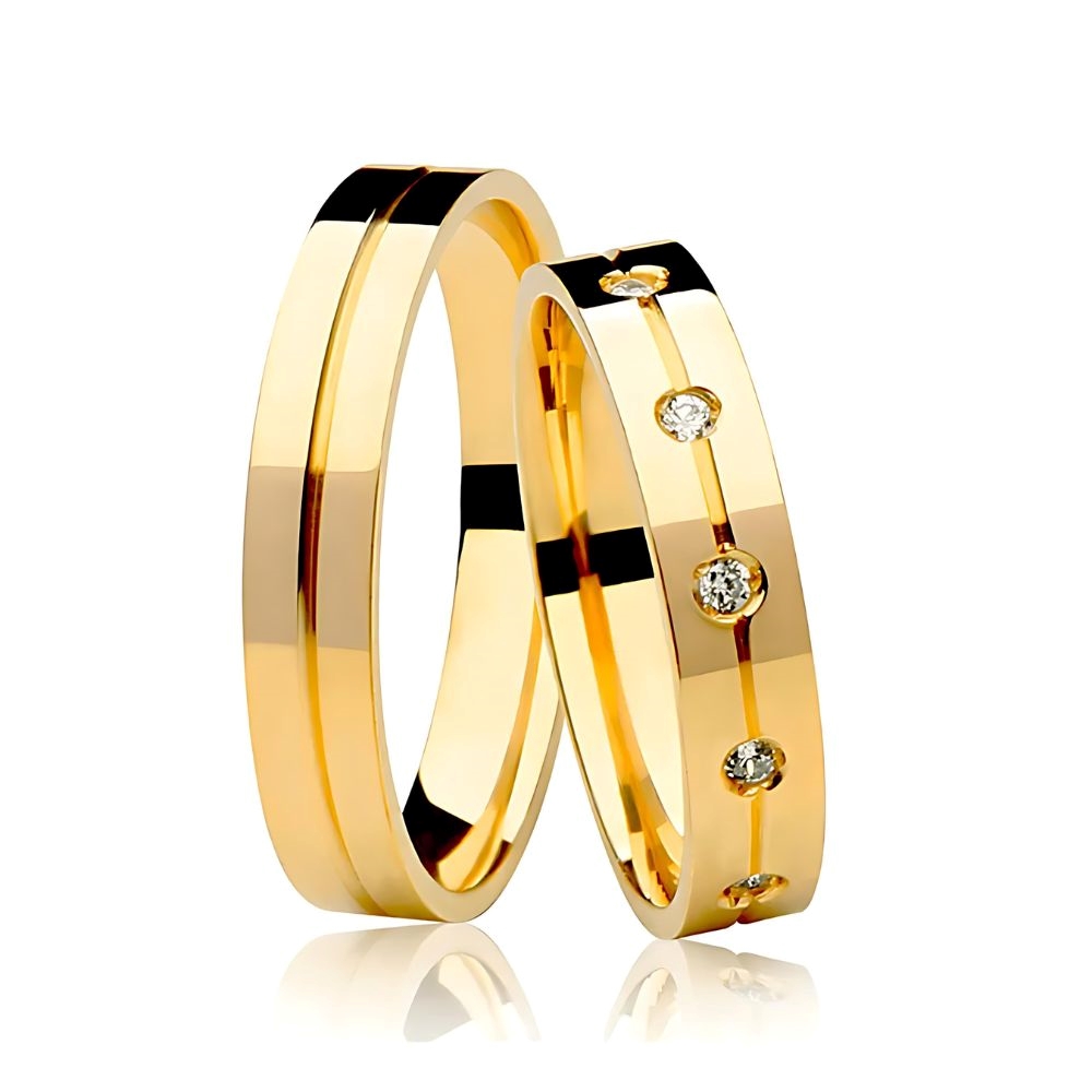 Reta: A parte interna da aliança é completamente plana, oferecendo um ajuste tradicional.