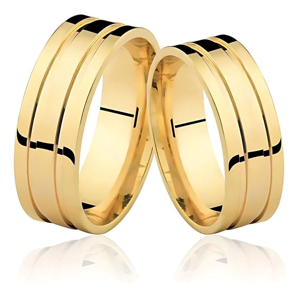 Reta: A parte interna da aliança é completamente plana, oferecendo um ajuste tradicional.