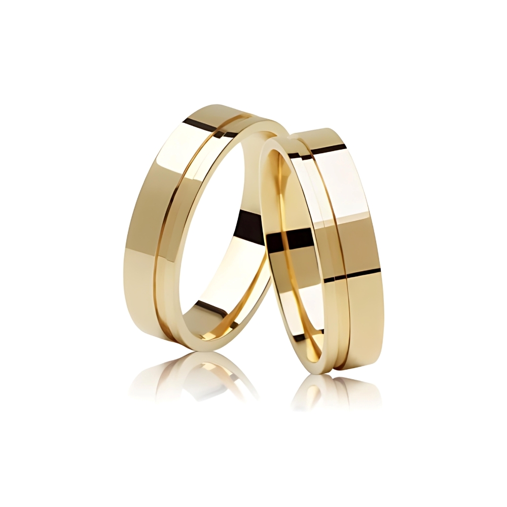 Reta: A parte interna da aliança é completamente plana, oferecendo um ajuste tradicional.