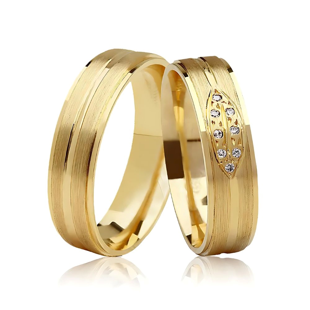 Reta: A parte interna da aliança é completamente plana, oferecendo um ajuste tradicional.
