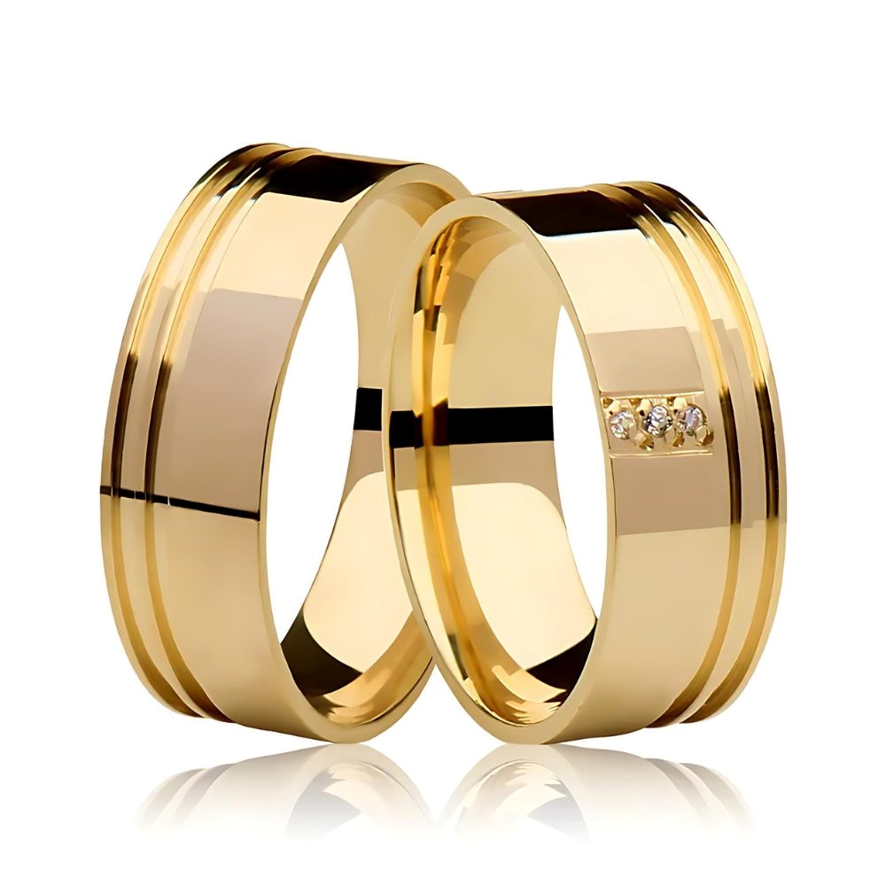 Reta: A parte interna da aliança é completamente plana, oferecendo um ajuste tradicional.