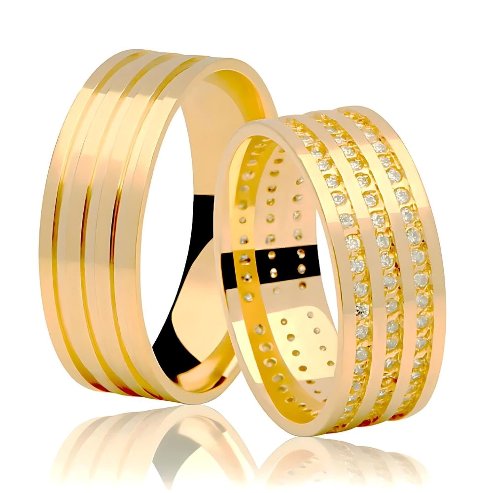 Reta: A parte interna da aliança é completamente plana, oferecendo um ajuste tradicional.