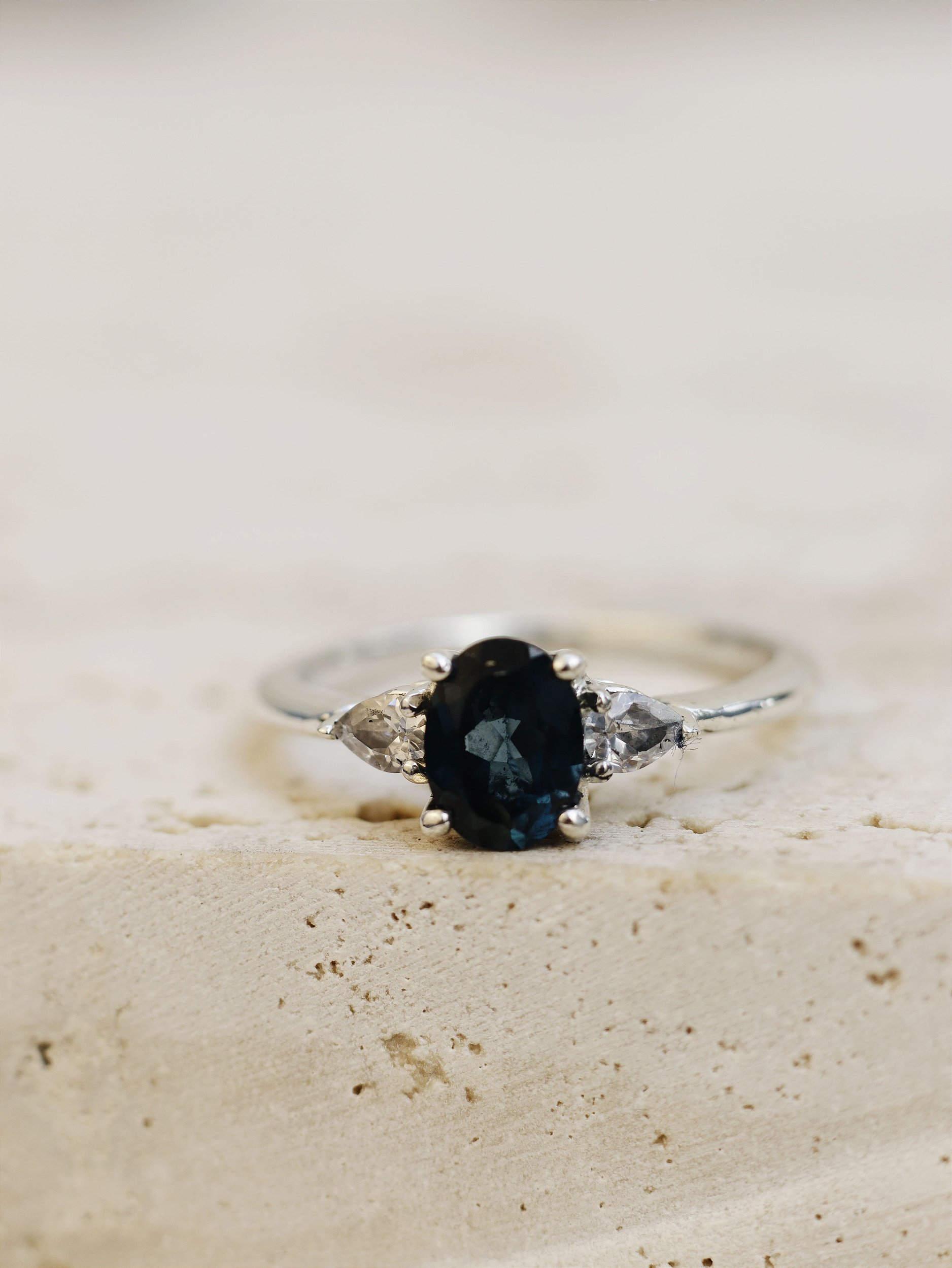 O Aurora Majestade é uma joia imponente em prata 925, com topázio London em lapidação Oval e topázios brancos triangulares laterais . Um anel que exala sofisticação e força.