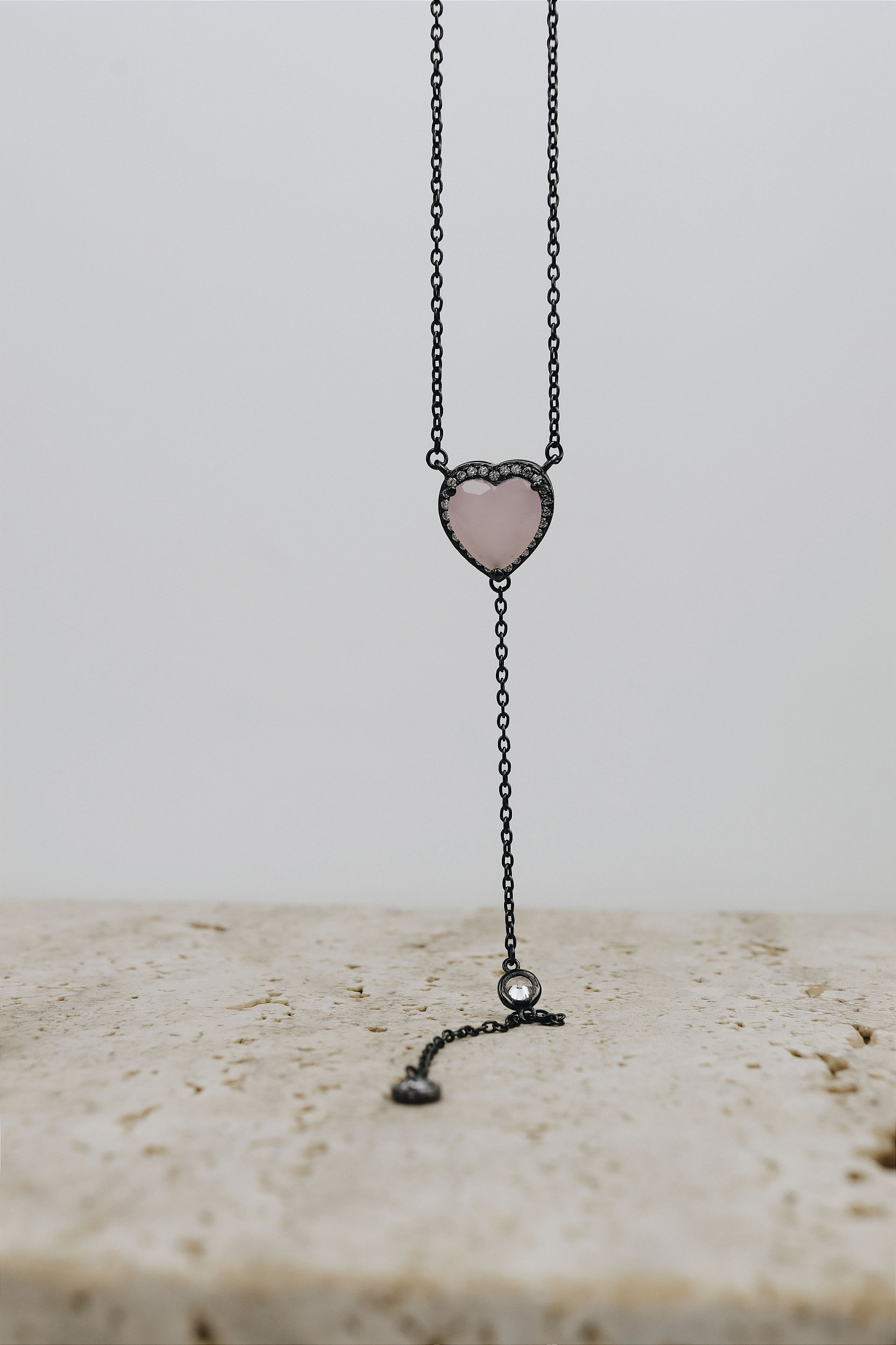 Colar gravatinha Quartzo rosa - Prata com Ródio especial para acompanhar pessoas elegantes em todos os momentos! Entre em nosso site e confira nossa coleção.