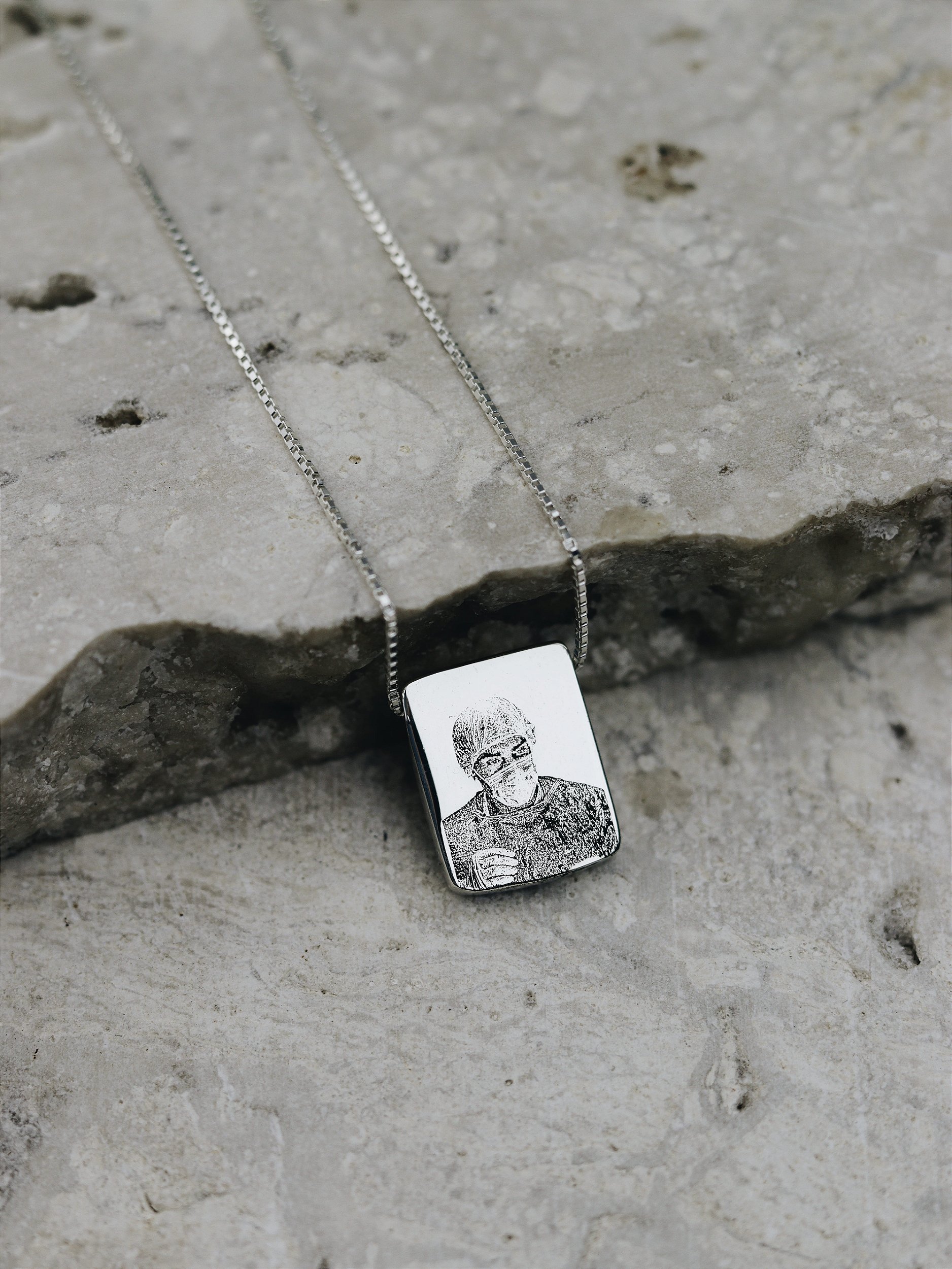 Nosso Colar Fotogravação é feito para eternizar sentimentos em detalhes. Disponível em formato redondo (18mm) ou quadrado com canto arredondado (17x13mm), ambos com 3,5mm de espessura, carrega uma fotogravação realista que não sai com o tempo, preservando até os mínimos detalhes da imagem escolhida. Você pode gravar uma foto na frente e escrever ou incluir uma segunda imagem no verso.