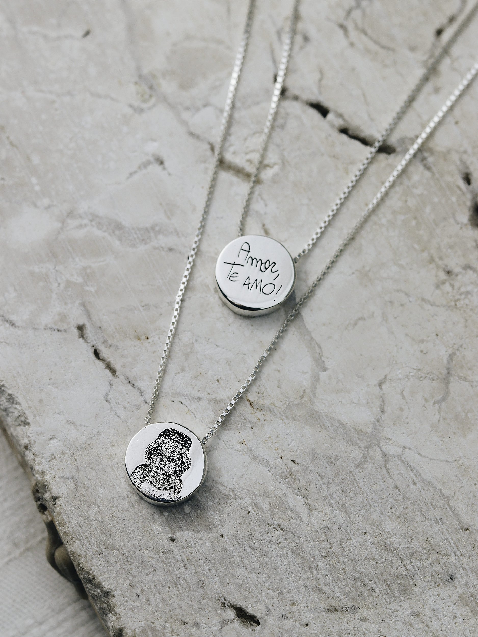 Tradição e significado em uma versão moderna e personalizada. Nossos escapulários são produzidos em formato redondo (13mm) ou quadrado com canto arredondado (12x9mm), ambos com 3,5mm de espessura, garantindo robustez e beleza. Cada escapulário permite até 4 gravações diferentes — uma em cada face dos dois pingentes. A fotogravação é realista e mantém todos os detalhes sem desgaste com o tempo, podendo ser combinada com escritas especiais. Acompanha corrente veneziana v15 70cm
